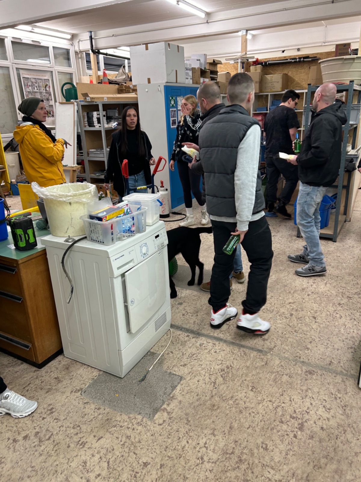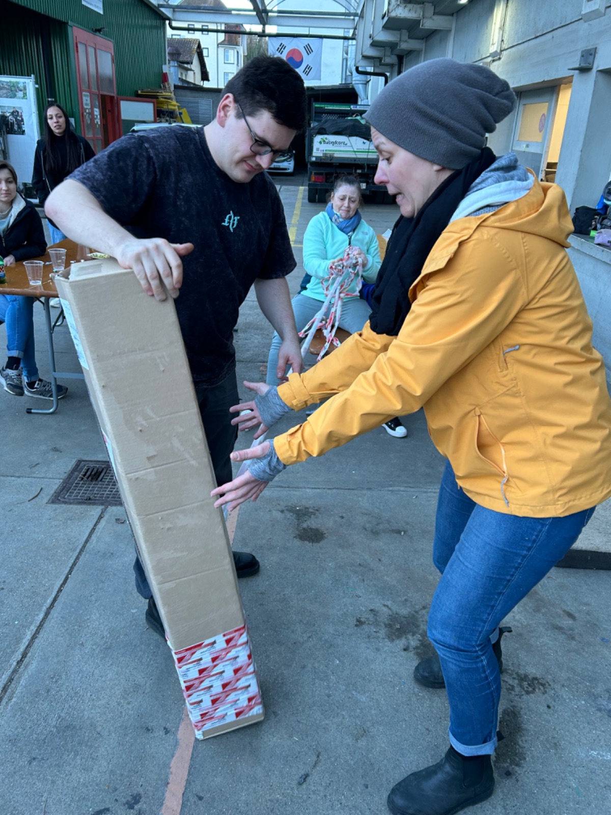 In diesem Jahr sind wir im Magazin gestartet, wo uns Carmen in Ihren extra für Zweipack erstellten Postenlauf eingeführt hat. In drei Gruppen mussten wir uns den schwierigsten Aufgaben stellen: Von Eisskulpturen schnitzen, über Weihnachtslieder per Sprachnachricht versenden, Kugeln am Weihnachtsbaum zählen bis hin zu "Rätseln unter Glühweineinfluss" war alles dabei. Sogar einen Adventskranz durften wir selber binden (natürlich unter Anleitung der Inhaberin des "Bluemehuus Bäumleingasse 7").