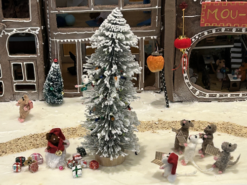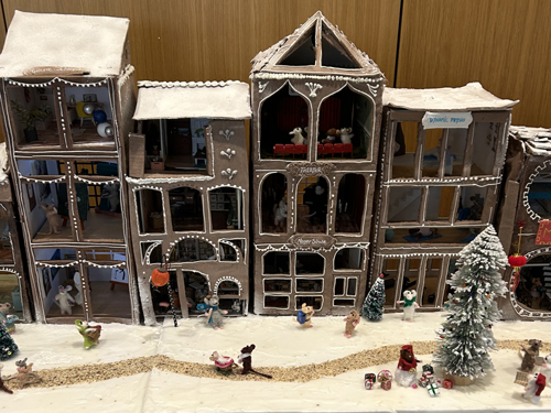 Mimis grandiose Idee, ein Lebkuchendorf in der Eingangshalle des Spitals zu bauen, fanden wir cool. Wenn dann der Rest des gesammelten Geldes noch zur Unterstützung eines Wochenbetthauses dient, umso besser.