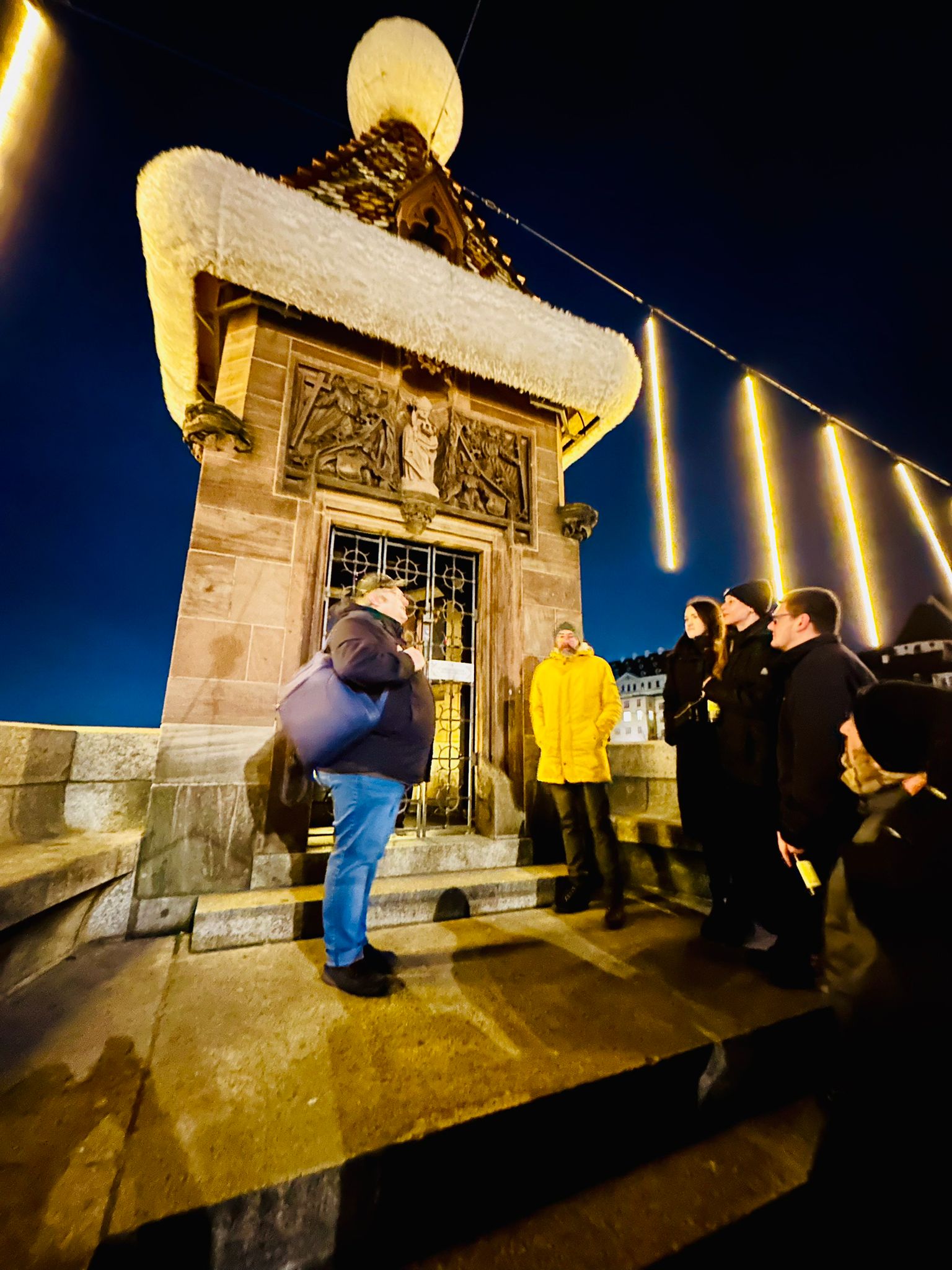 Bei eisiger Kälte trafen wir am Freitagnachmittag den bekannten Stadtführer Mike Stoll, welcher uns die Rolle der Spalenvorstadt im Mittelalter erklärte.