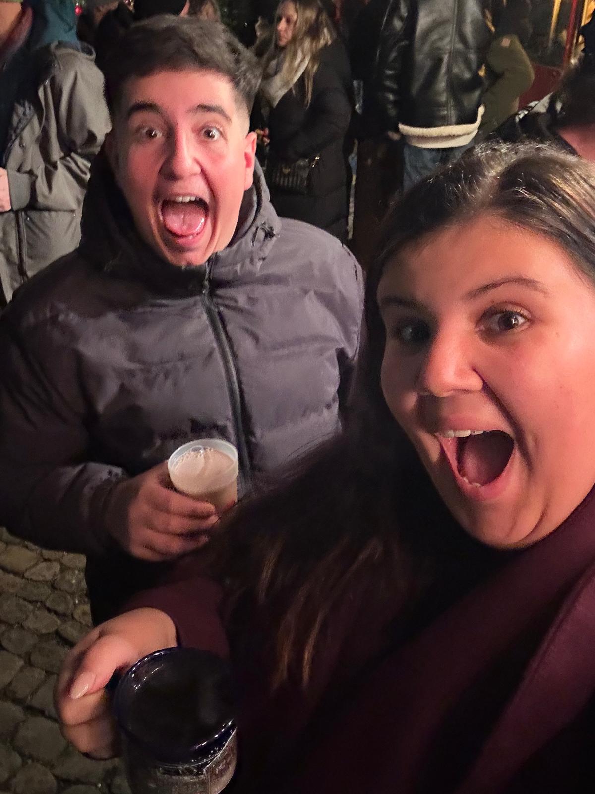 Der Abend begann entspannt mit einem Apero am Spalentorbrunnen (danke André!). Bei gutem Wein und Bier stimmten wir uns auf den bevorstehenden Abend ein. Nach der ersten Runde (und dem ersten Anstossen) zog es uns natürlich direkt zum Chäsbängel-Stand, wo wir uns ordentlich dem Fondue hingaben – reichlich Käse, Brot und natürlich ein paar Gläser Wein, damit wir nicht zu „Käse-Schnarchnasen“ wurden.