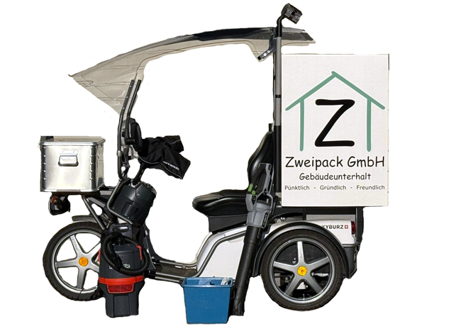 Elektro-Töffli mit Dach und massgefertigter Transportbox.